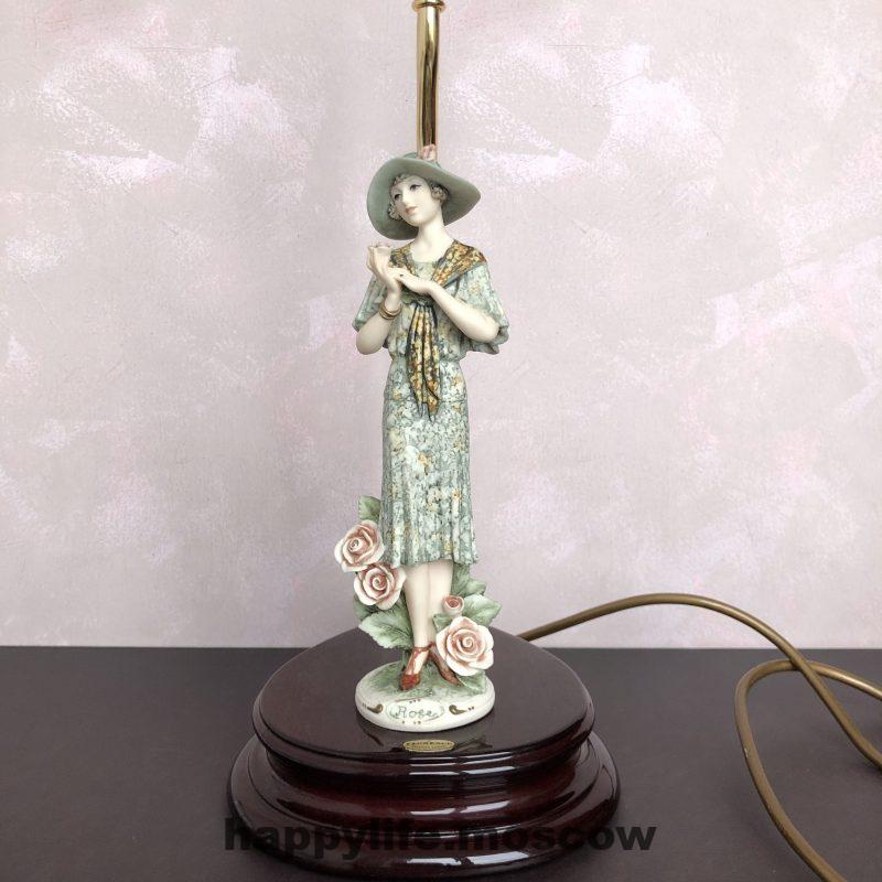 Настольная лампа студии Florence (Италия) в отличном состоянии. Без оригинальной коробки. Отмечена знаком «N» Capodimonte, подпись скульптора на основании статуэтки.